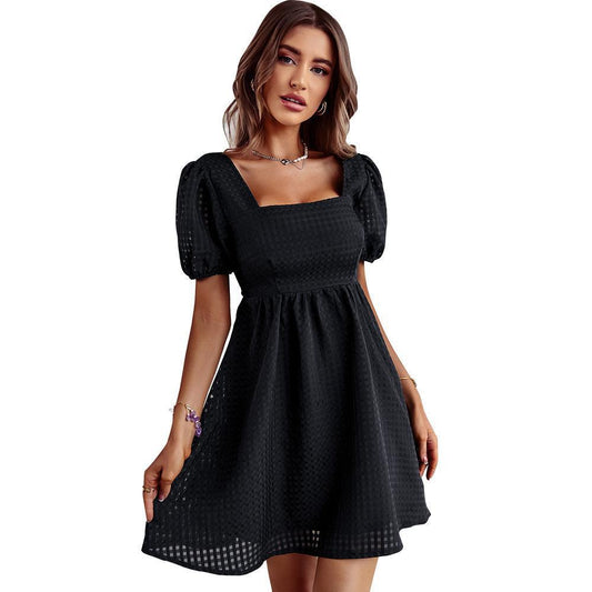 Summer Solid Color Elegant French Square Collar Dress